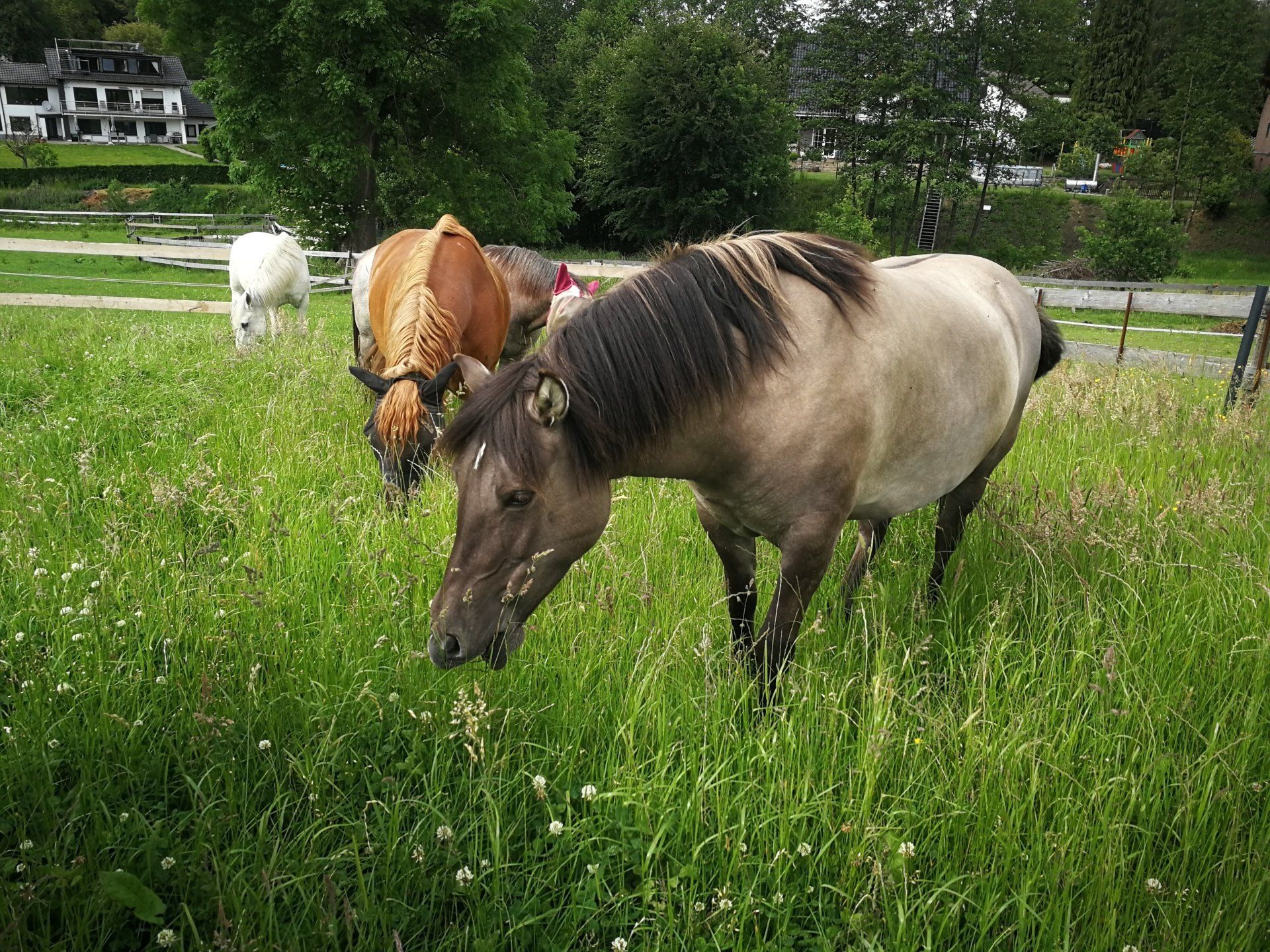 Im Gegensatz zum Wildpferd, dessen Nahrung sich hauptsächlich aus grob strukturiertem, hartem Raufutter zusammensetzt, nehmen unsere gehaltenen Pferde vor allem weiches Futter wie Weidegras, Müsli, Heu (oft aus strukturarmen Weidelgräsern) oder Pellets auf.